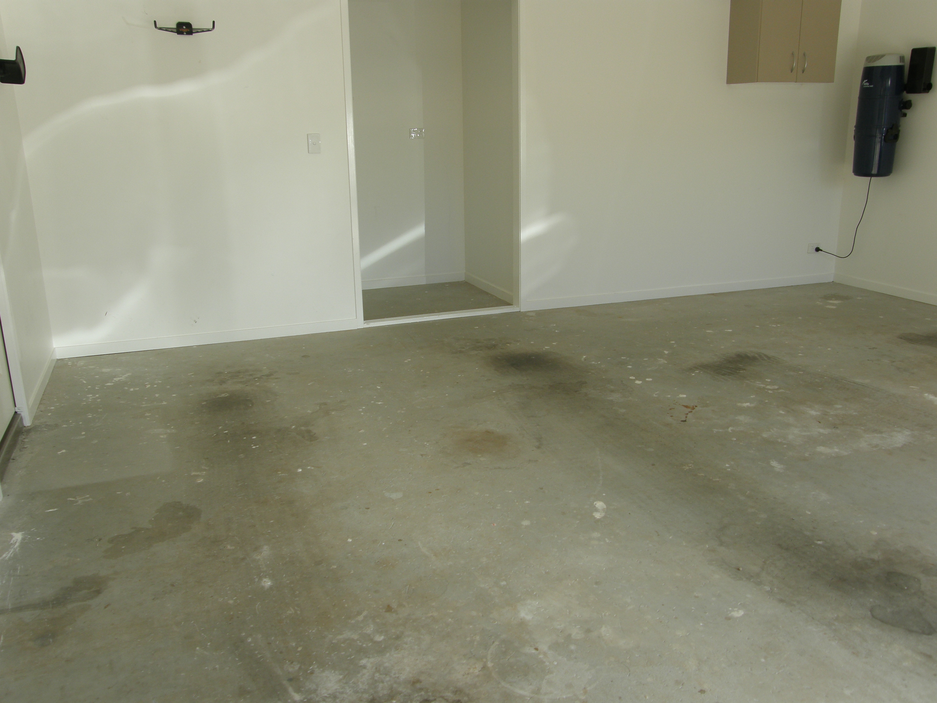 Over the years this garage floor had deteriorated with cracks and low spots appearing and rubber, oil and rust stains covering the surface.